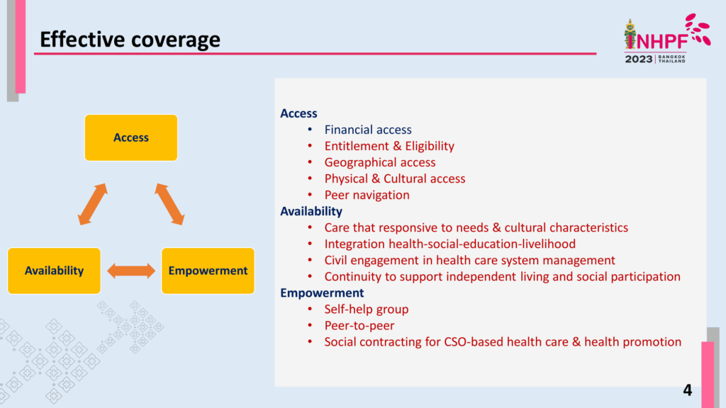 This involves a comprehensive understanding of the social determinants of health and the implementation of strategies to remove barriers to access, whether financial, geographical, cultural, or linguistic. An equitable and inclusive health system goes beyond the provision of services; it requires tailoring of these services to meet the diverse needs of different communities. This means that health promotion activities and programs must be designed considering the unique challenges and circumstances of various groups, including marginalised and underserved populations.